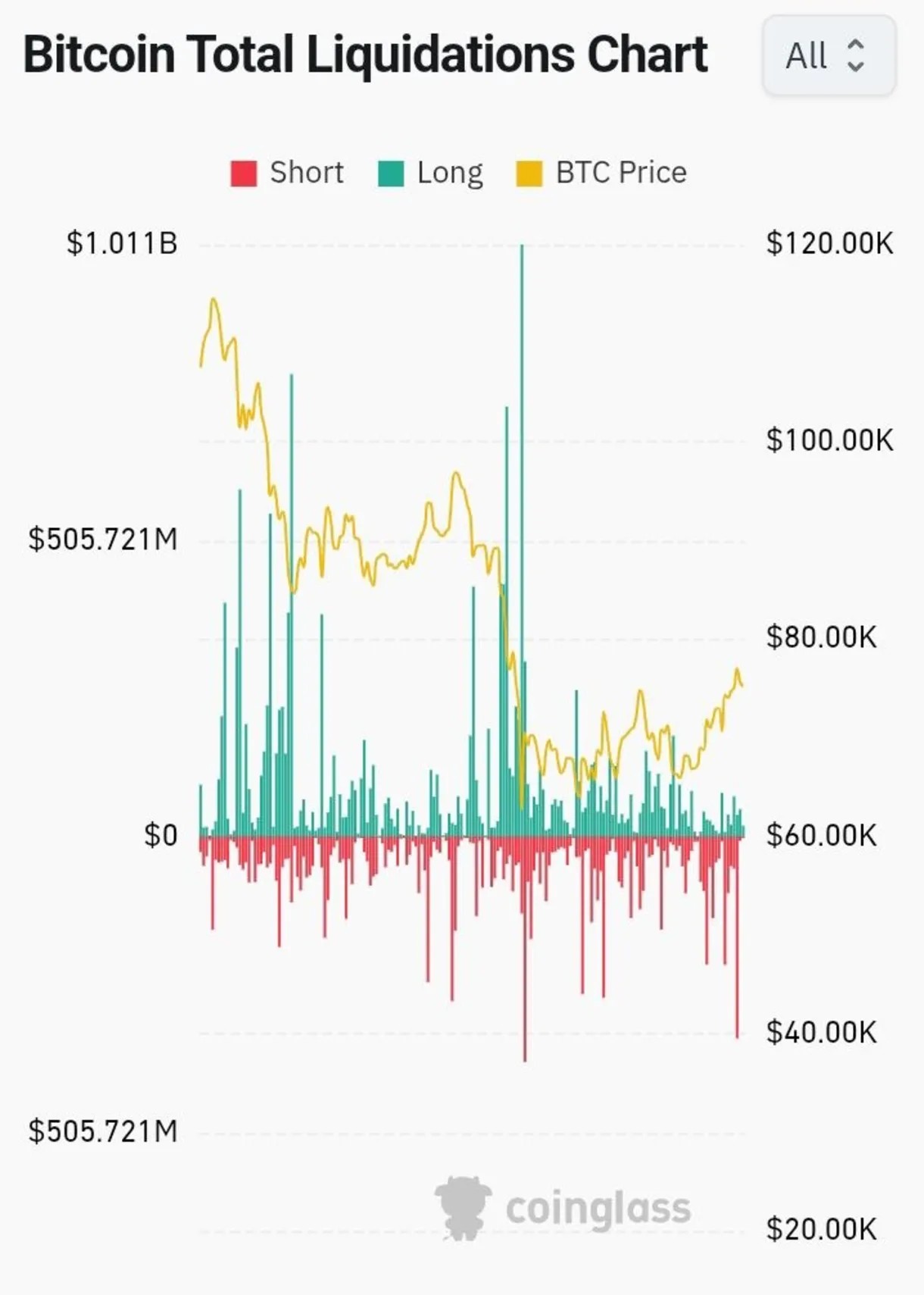 A decisive daily close above $76,000 would likely accelerate buying toward the $78,000-$80,000 range.