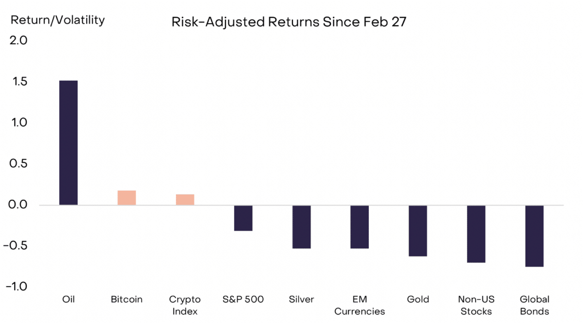 Crypto has held up well since the start of the war with Iran.