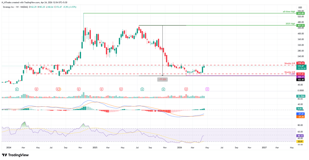 The Relative Strength Index (RSI) reads 46 on the weekly chart, pointing upward toward the neutral level of 50 after recovering from oversold territory, indicating fading bearish momentum. The Moving Average Convergence Divergence (MACD) indicator on the same chart showed a bullish crossover last week, with a positive histogram supporting the bullish thesis.