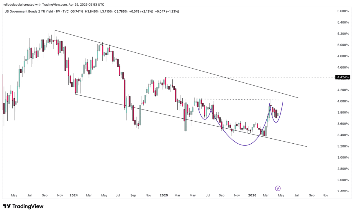 The 2-year yield has started to form a head-and-shoulders pattern—a technical structure that often precedes upward breakouts.
