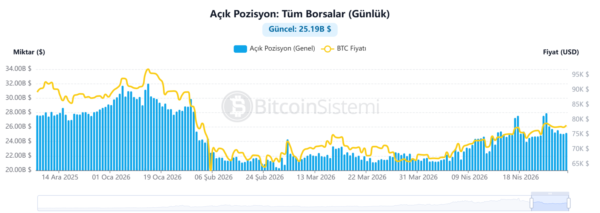 The open interest data, which indicates the size of the derivatives markets, stands at $25.19 billion. This high open interest level suggests significant leveraged trading in the market and high potential volatility. According to experts, these levels point to a “fragile” market structure where large liquidation waves could occur during sudden price movements.