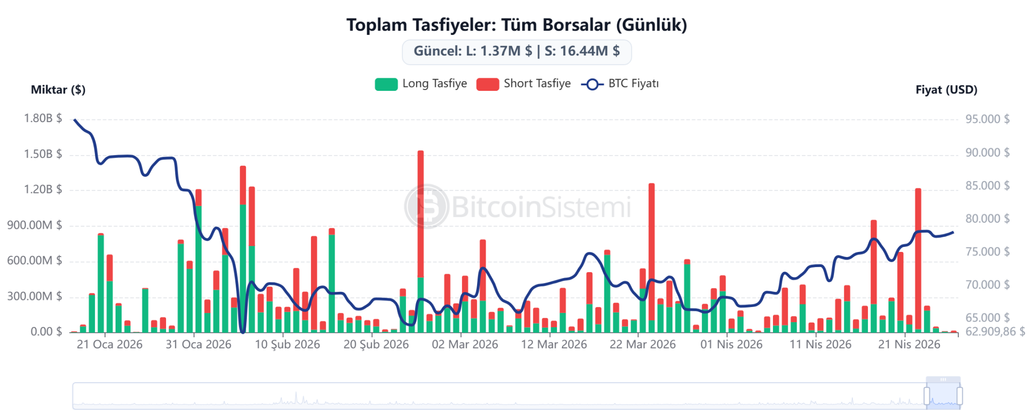 The latest on-chain data in the Bitcoin and cryptocurrency market continues to generate important signals about investor behavior and market structure. While the Bitcoin price is trading at $78,026, liquidation data in derivative markets and on-chain indicators present a noteworthy picture.