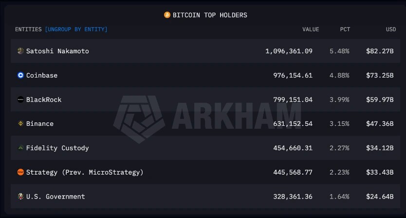 Currently, the US government holds about 328,372 $BTC valued at about $25.4 billion at the current $BTC price of $77,357. This makes it the largest sovereign holder of Bitcoin globally, followed by China (about 190,000 $BTC) and the UK (about 61,000 $BTC).