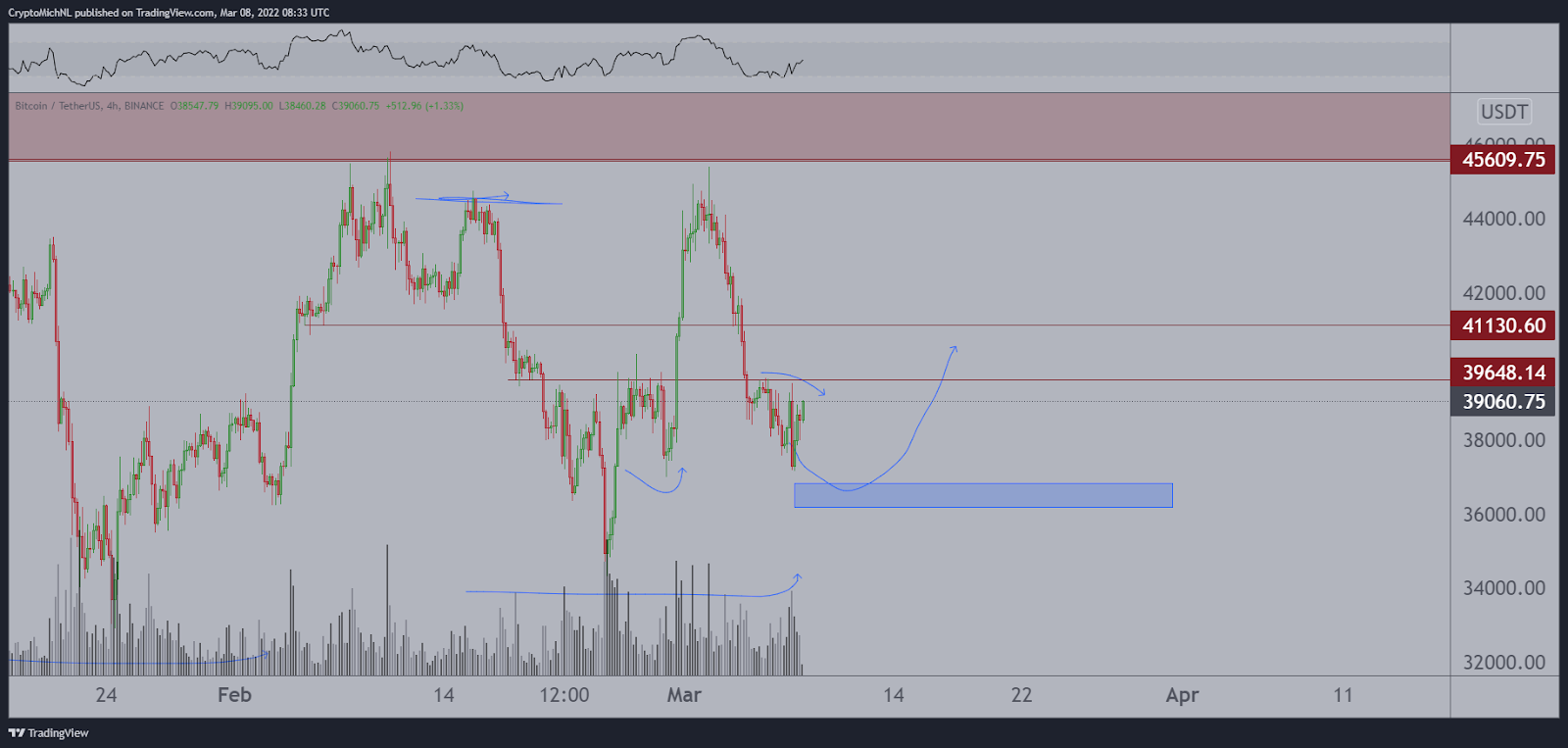 Analyzing the chart above on his YouTube channel, van de Poppe noted that Bitcoin hasn’t been moving towards the area of around $36,000 (the blue box) at this point, through which the liquidity wasn’t taken.