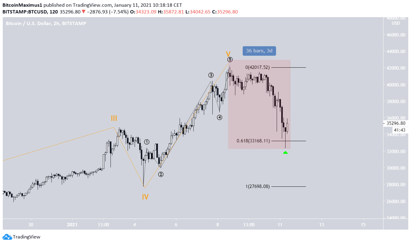 “Bitcoin is in wave 5 (white) of this cycle wave. A likely target for the top of the move is found between $40,602-$44,127.”
