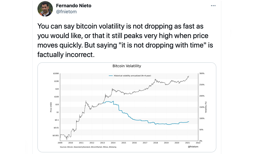 Following Taleb’s initial tweet on February 12, the author tweeted some more on the 14th, and criticized Kraken FX’s Dan Held. Blockchain researcher Willy Woo responded to Taleb’s critique and said that “volatility is a red herring.”