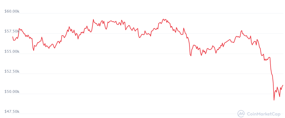 BTC crashes below $50k