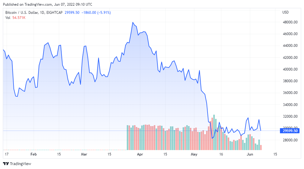 BTC price chart for 06/07/2022 on Eightcap | Source: BTC/USD on TradingView.com