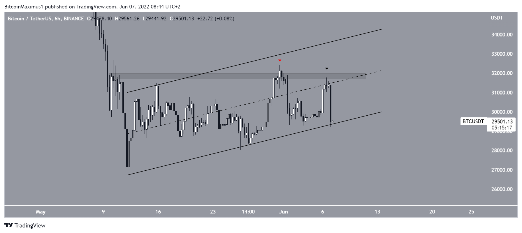 The six-hour chart shows that BTC has been increasing inside an ascending parallel channel since May 12. Such channels usually contain corrective structures, meaning that an eventual breakdown from them would be expected.