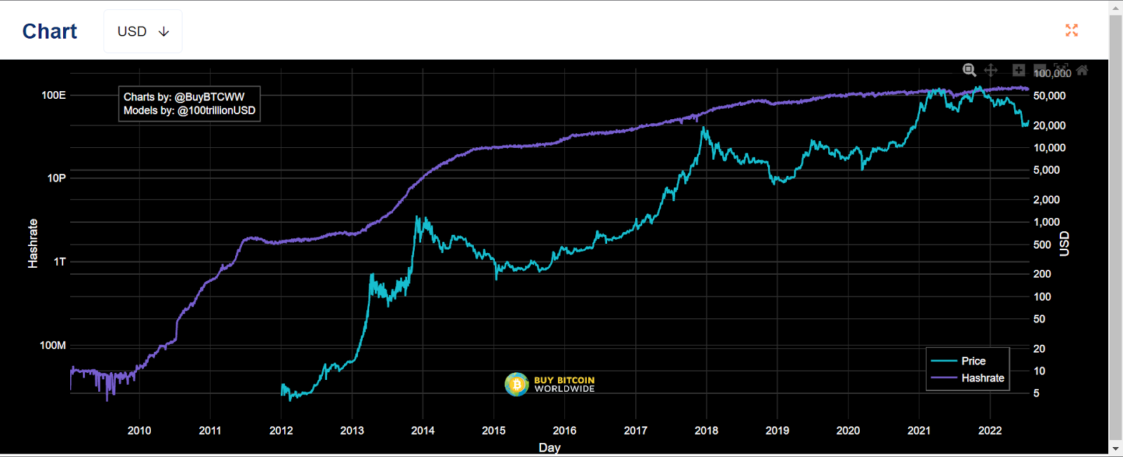However, there is the belief that Bitcoin’s price affects the mining hashrate. When the Bitcoin’s price is high, more miners will join the network because inefficient miners may still make money thanks to higher margins. But if the price declines, the margin thins, and fewer miners can remain profitable.
