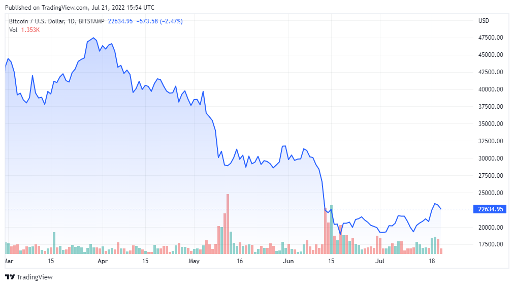 BTC price chart for 07/21/2022 on Bitstamp | Source: BTC/USD on TradingView.com
