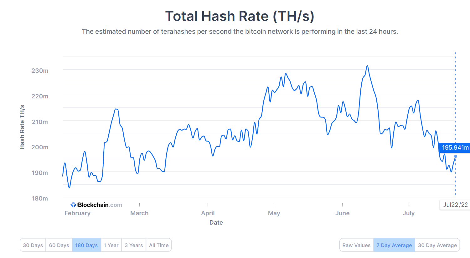 At its peak, the Bitcoin hash rate reached an all-time high of 231.428 exahash per second (EH/s) when BTC prices fell to $25,000 last month in June — raising momentary concerns around extensive power usage.