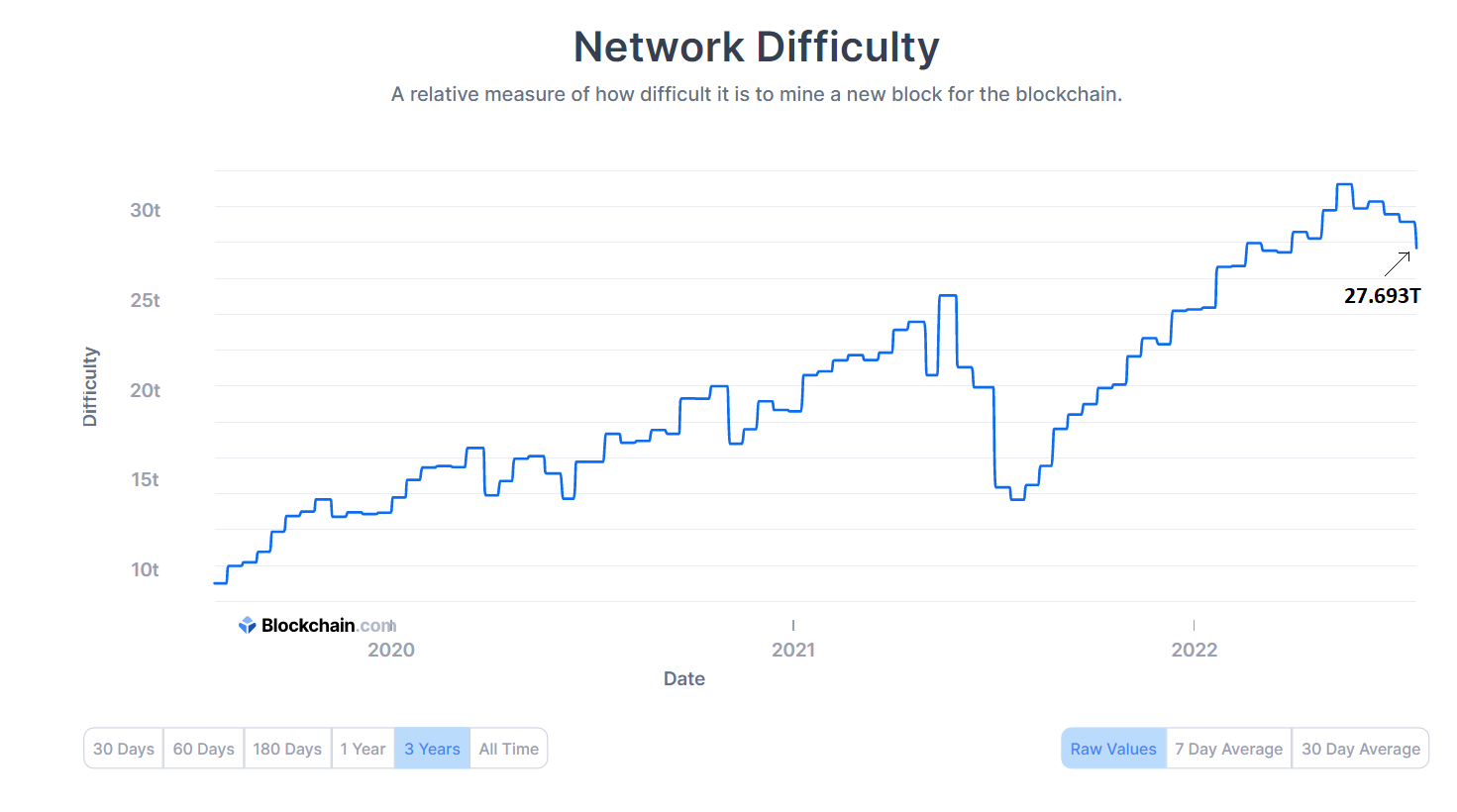 The difficulty in mining a block of Bitcoin (BTC) was reduced further by 5% to 27.693 trillion as network difficulty maintains its three-month-long downward streak ever since reaching an all-time high of 31.251 trillion back in May 2022.