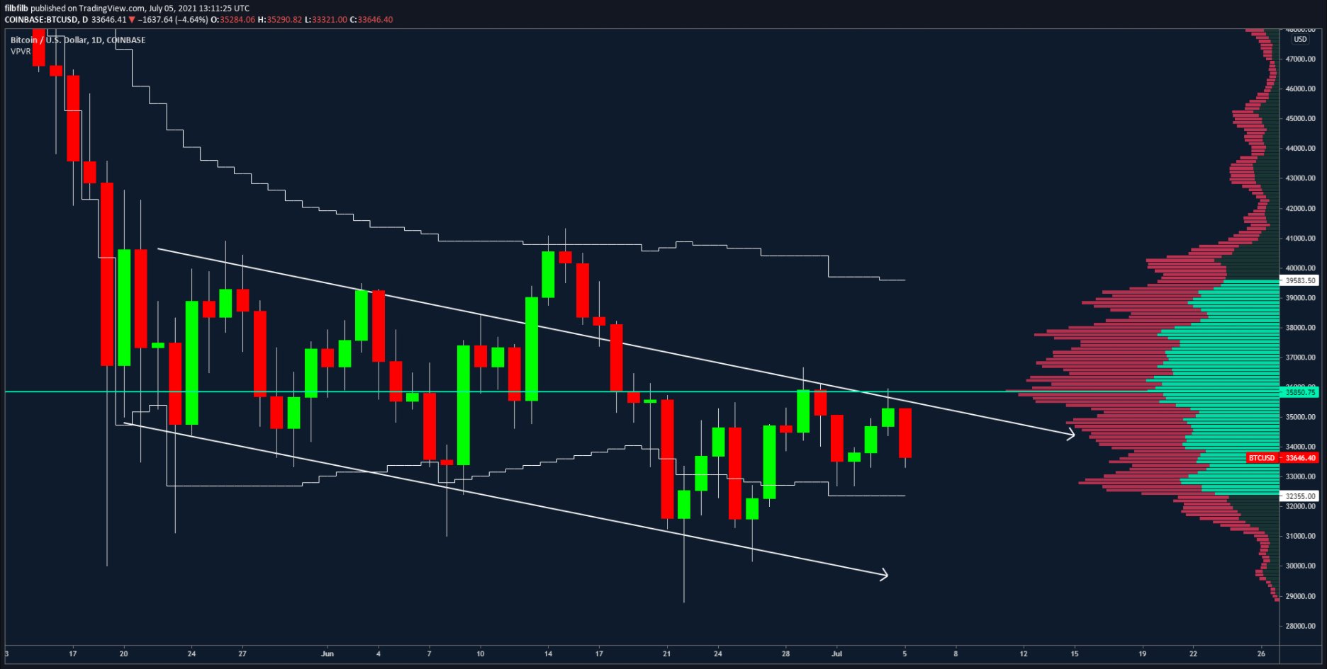According to Wyckoff analysis, a popular method for charting BTC price action, $36,000 marks the likely end of a "phase C" and the beginning of a "phase D" for BTC/USD — with trajectory favoring the upside.