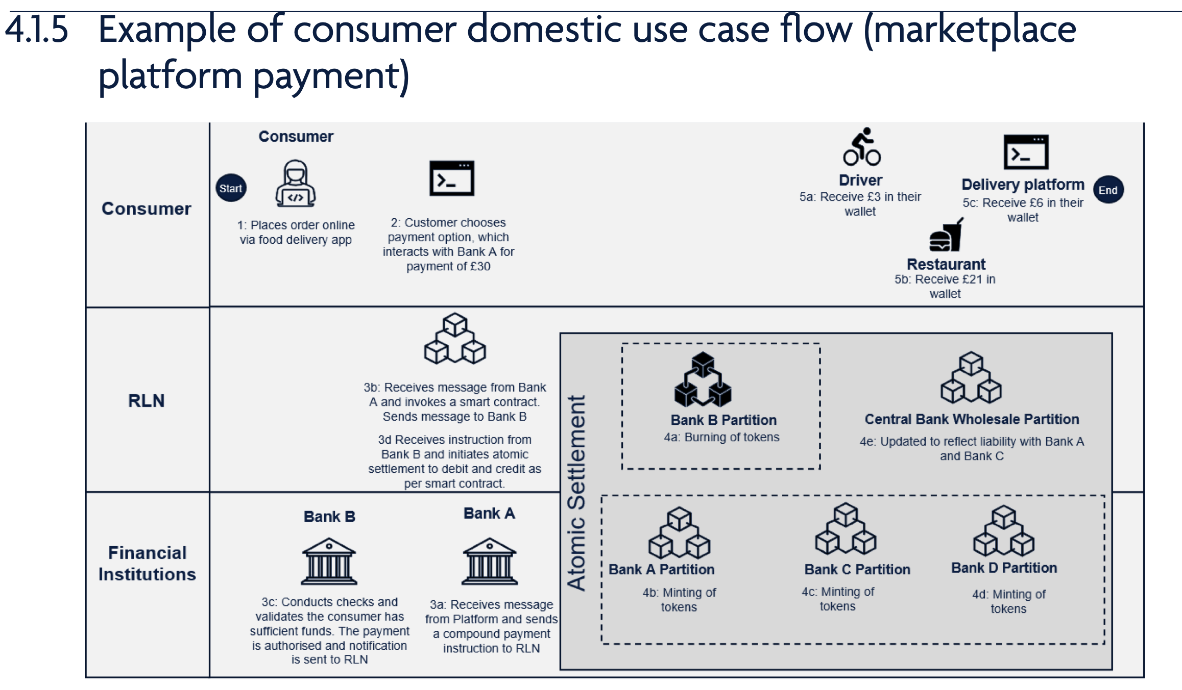 “This use case would help explore how ‘upgraded’ commercial bank money could sit alongside a retail CBDC, how RLN could accommodate both forms of money on a single infrastructure, and how the functional equivalence of all retail digital money could be ensured.”