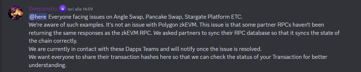 Fortunately, in this case the problem is not as serious, as the cause of the anomalies, as mentioned above, is a matter of synchronization of some RPCs with the Polygon zkEVM.
