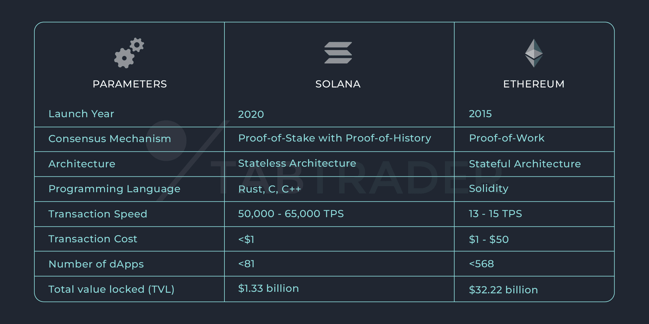 The Ethereum network provides developers with extensive smart contract functionality and broad developer backing together with Solana's capability for fast operations at low costs.