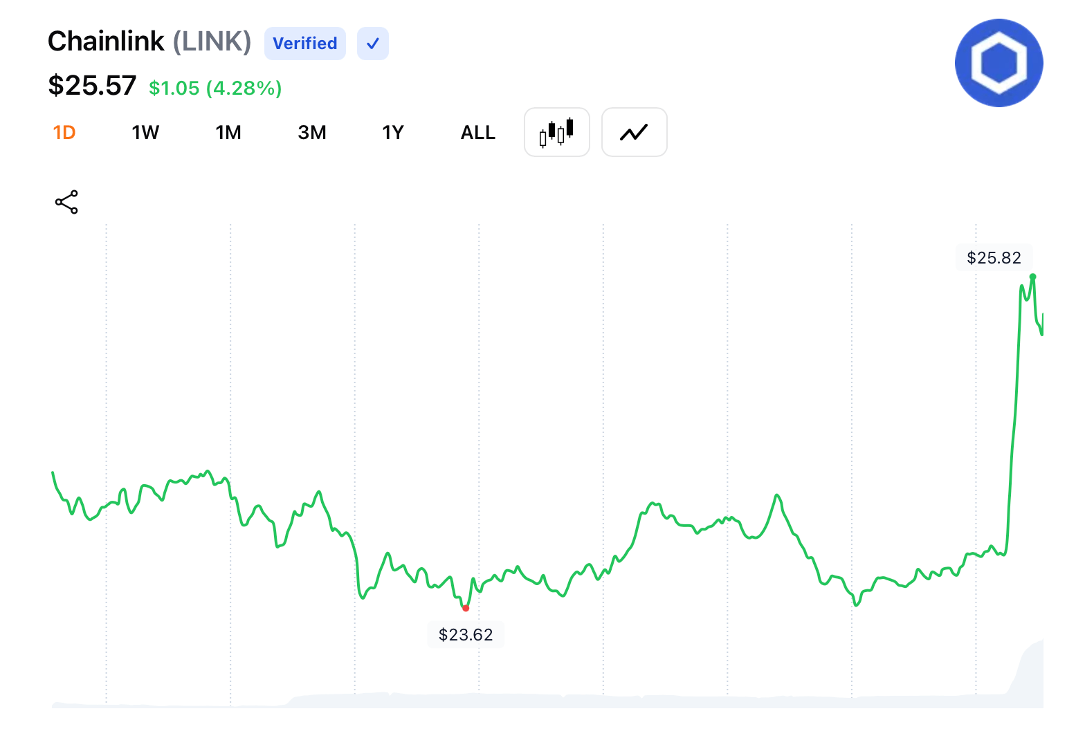 This effort, Chainlink says, reflects growing recognition of oracle networks as essential infrastructure for linking traditional institutions with blockchain markets, fostering both innovation and regulatory compliance. LINK, Chainlink’s native token, is up 4.28% higher following the announcement.