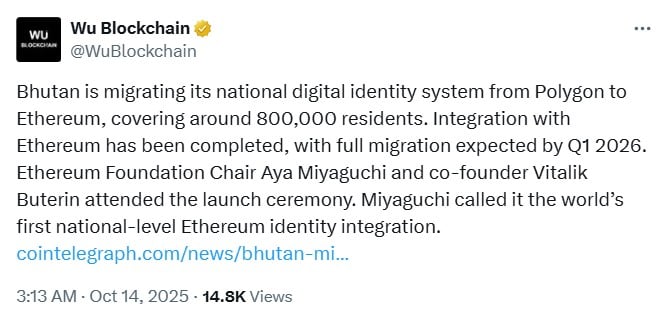 - The full migration from Polygon to Ethereum is expected to be completed by early 2026, marking a key step in Bhutan’s digital transformation.