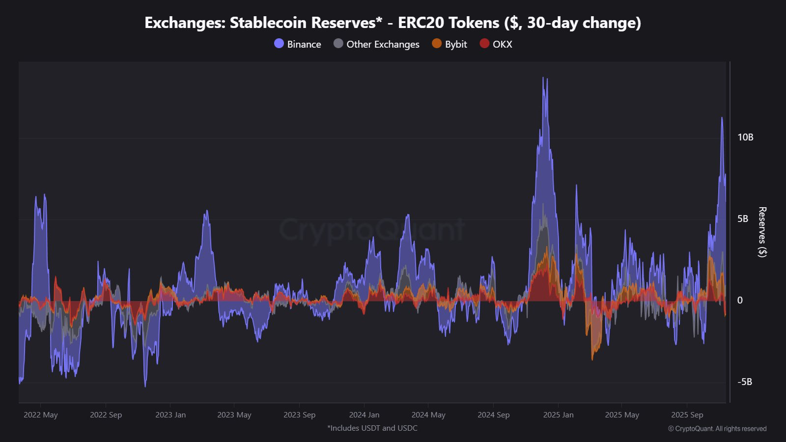 According to on-chain data analysis from CryptoQuant, Binance’s stablecoin reserves increased by more than $5.76 billion during the past 30 days. Earlier this week, Binance released a report, which noted that more users, including institutions, have benefited from highly liquid stablecoins due to their reliable low-risk interest.