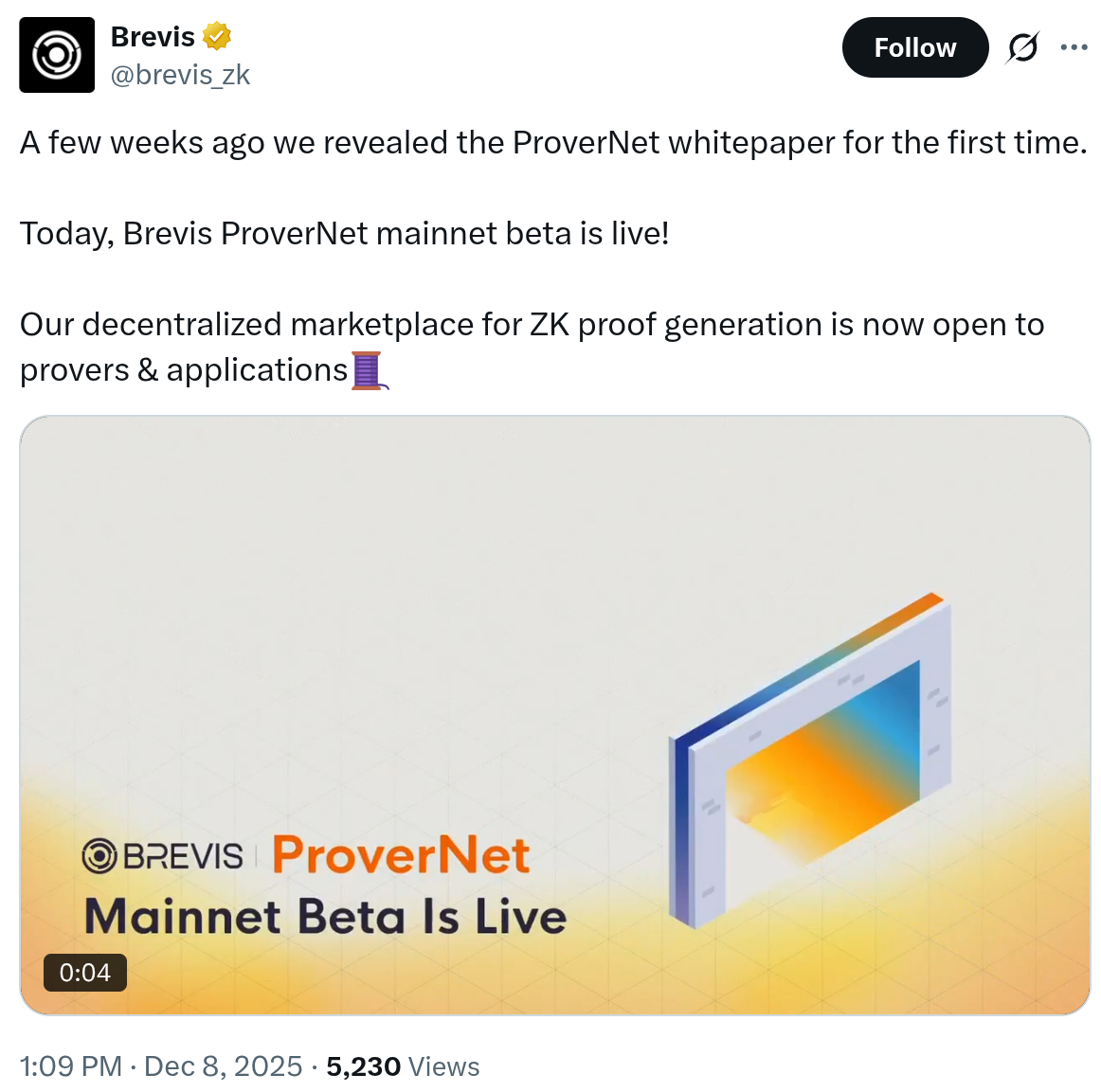 Brevis has long offered ZK-proof processing as a solution for the industry. The firm announced in late 2023 that it supported Uniswap v4 hooks to trustlessly read and compute the transaction history of liquidity providers and traders.