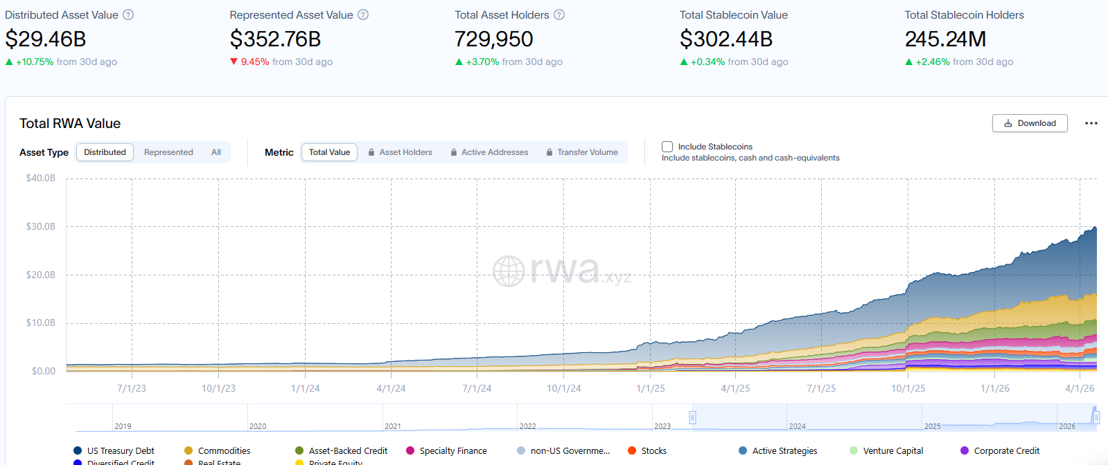 The value of tokenized real-world assets on public blockchains has been on the rise in 2026, and is sitting at over $29 billion, up over 10% in the last 30 days, according to data from rwa.xyz.