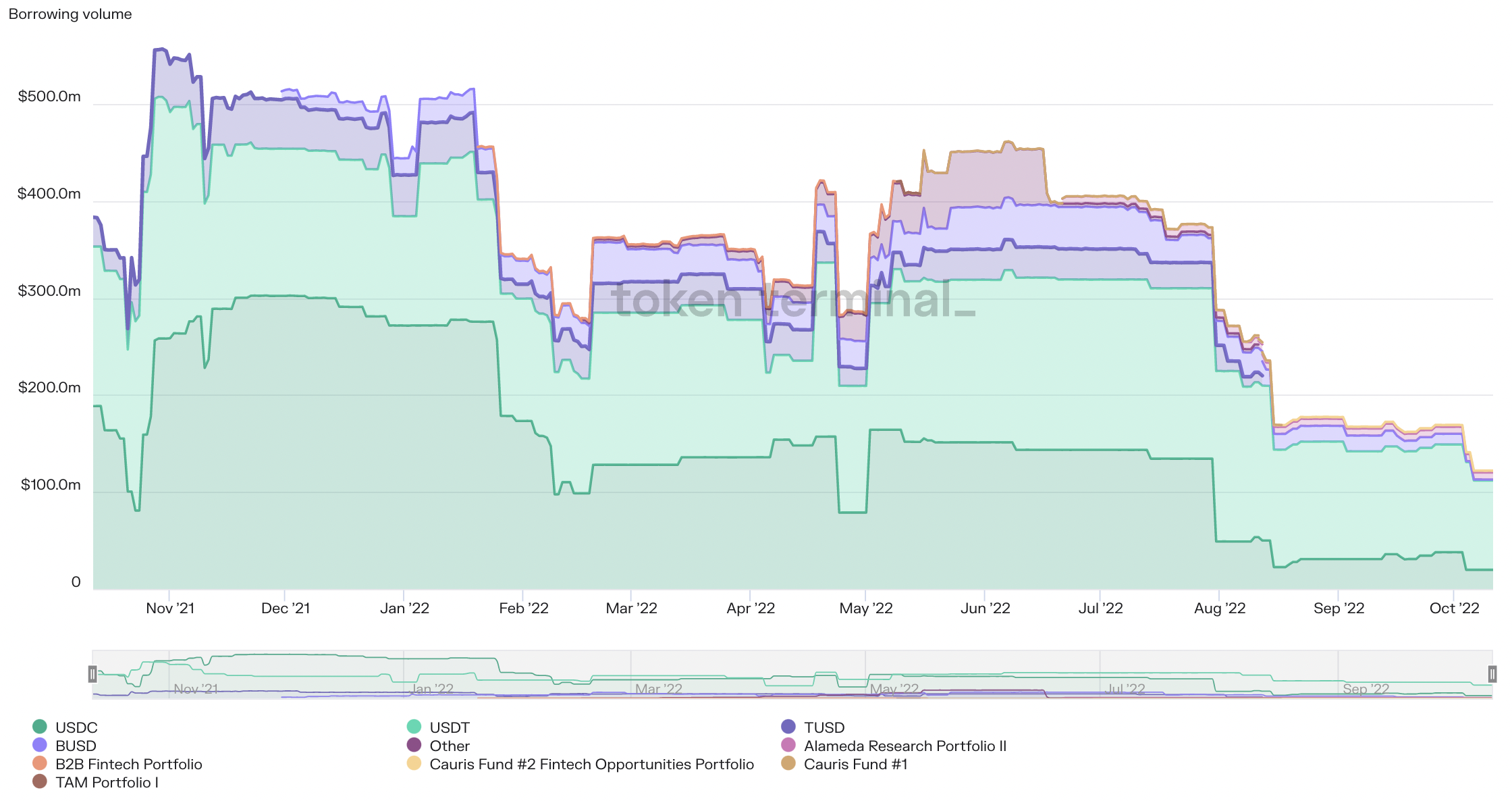 TrueFi already is dealing with the fallout from the news last month that crypto market maker Wintermute fell into a precarious financial position after it lost $160 million in a hack. Wintermute is the single largest borrower on TrueFi with $92 million debt outstanding at press time, which is due to mature on Oct. 15. On Sept. 21, TrueFi said its “credit team has held multiple constructive discussions” with Wintermute, and that it could come up with a short-term loan if needed.