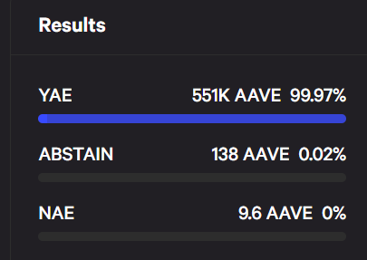 Over 99% of all governance participants voted in favor of the proposal. (Aave)