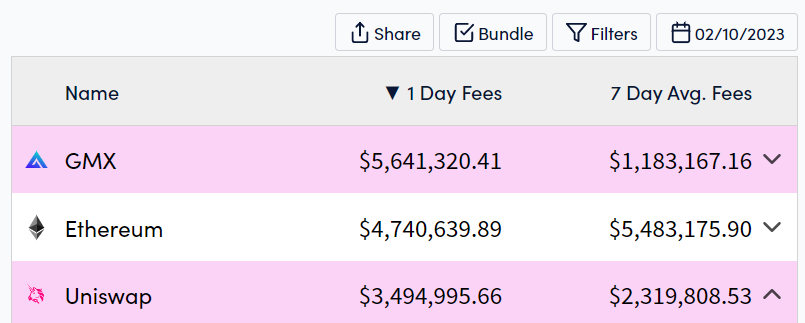 GMX fees crossed those of Ethereum blockchain. (CryptoFees)