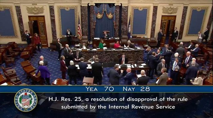 On March 26, the Senate voted to repeal the controversial crypto tax rule.