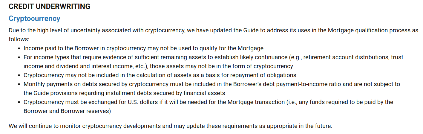 If approved, the move could help integrate crypto assets more fully into traditional mortgage finance, making borrowing more accessible to crypto holders.