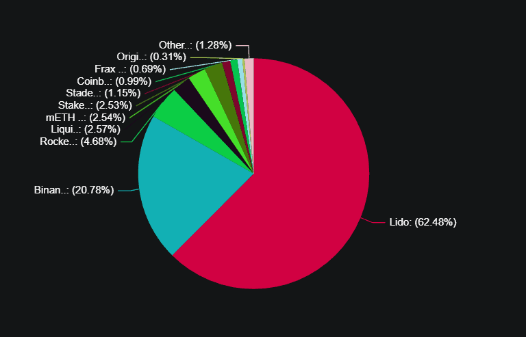 They also lead in Liquid Staking Tokens (LSTs), holding 8.9 million in staked Ether, compared to the 2.9 million held by the Binance protocol. Additionally, Lido has over 60% of the market share of these tokens.