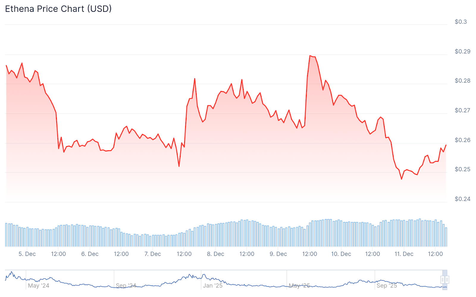 Despite HyENA’s success, the ENA token has struggled, down 9% over the last week and 3.3% over the last 24 hours.