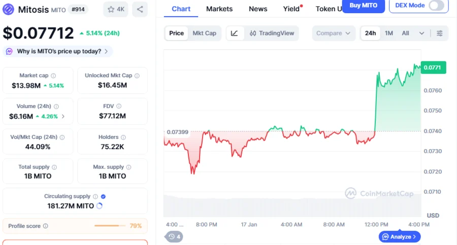 On-chain data shows that MITO is a relatively new crypto asset that debuted its public trading on leading crypto exchanges (like Binance and several others) last year, on August 20, 2025, to enable mainstream users to access and interact with the decentralized token.