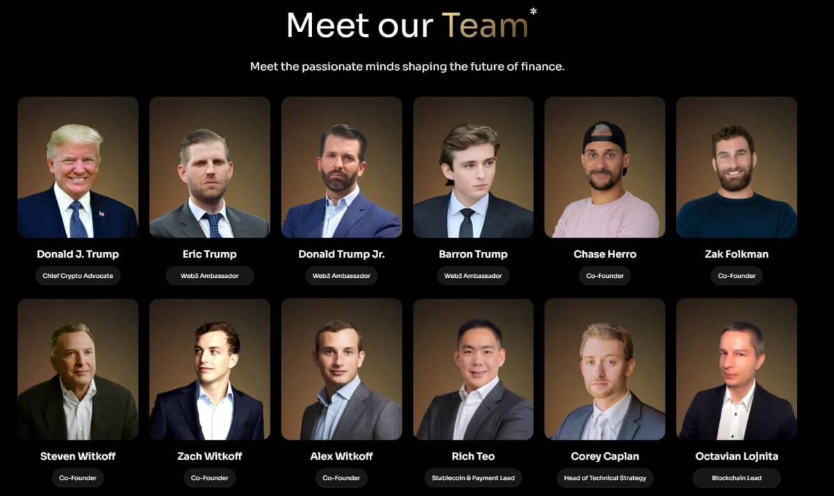 The crypto project was launched in the fall of 2024, with the U.S. President and his sons, Eric, Trump Jr., and Barron, displayed on the team member page as co-founders, including Chase Herro, Zak Folkman, and the Witkoff family.