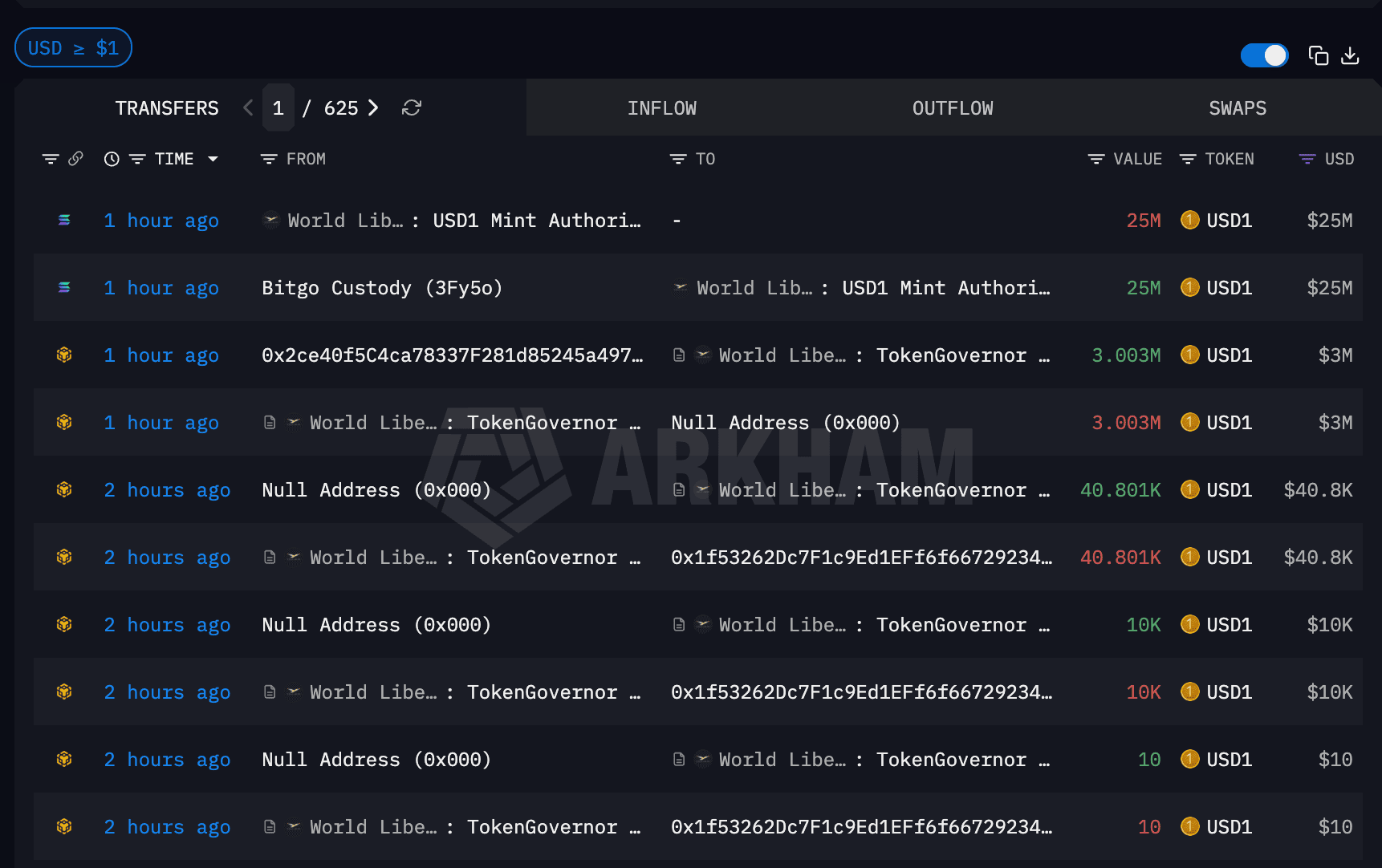 Monday's mint was funded through BitGo Custody and executed via $WLFI's $USD1 Mint Authority contract. The 3 million $USD1 burn moved from an address starting 0x2ce to the TokenGovernor contract before being sent to the null address, permanently removing the tokens from circulation.