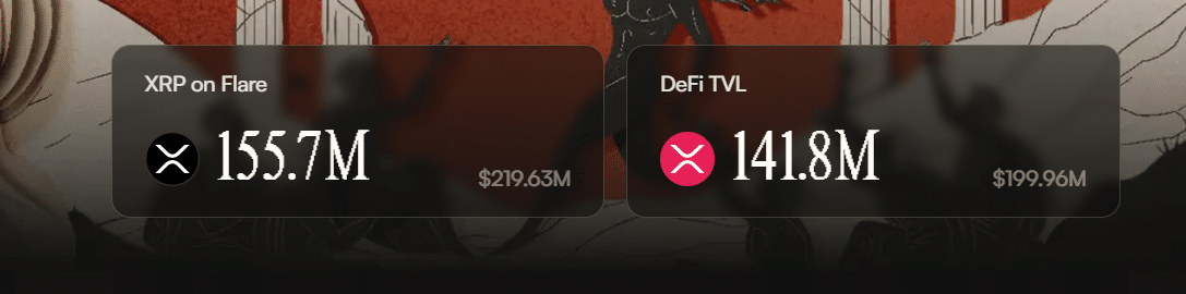Across the broader network, Flare now holds a total value locked of 155.7 million $XRP, worth about $219.63 million. Of this figure, Firelight alone accounts for $71.59 million, which represents an over 32% share.