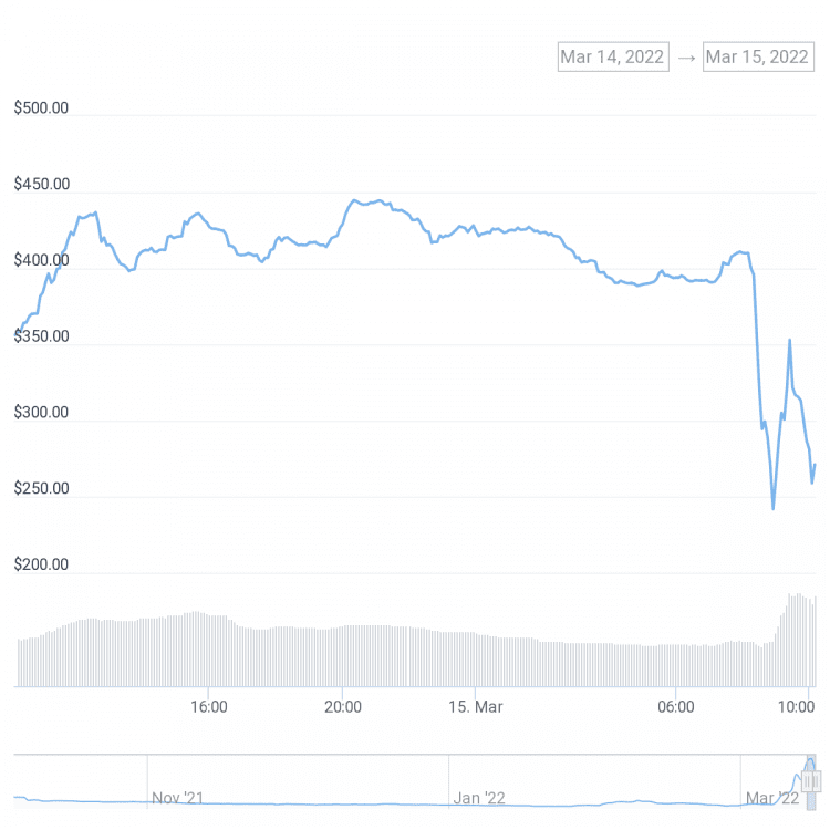 The development today comes barely a day after the native cryptocurrency DEUS reached an all-time high (ATH) of $444.79, according to CoinGecko. At the moment, DEUS is 30% down from its ATH, probably due to this incident.