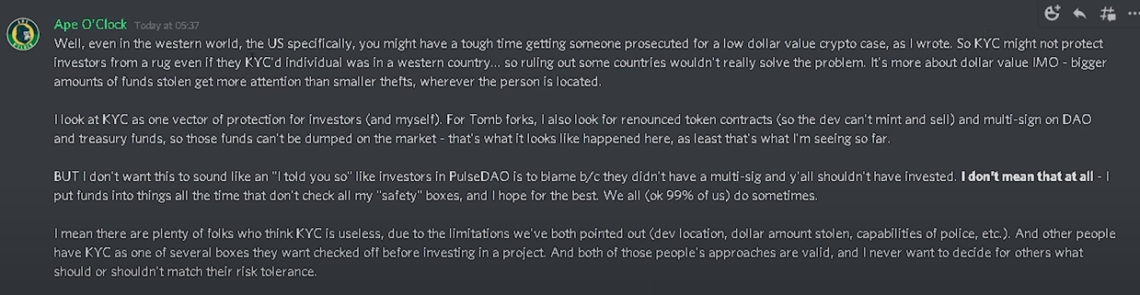 Recently, PulseDAO got rugged. Allegedly, their own dev turned against the and KYC might not be enough to hold this person accountable.