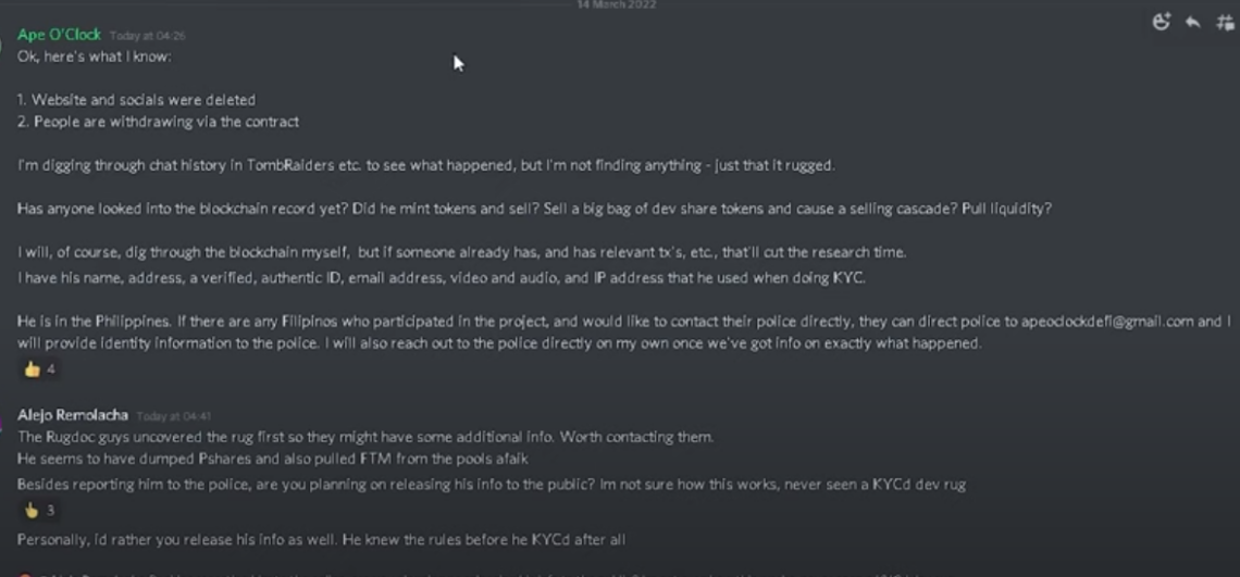 He listed his wallet in a recent video and movements can be checked via FTMScan. Although he claims otherwise, some users say it is unclear if he owns other wallets. However, he seems to be actively collaborating with Ape O’Clock to investigate the pull and take action.