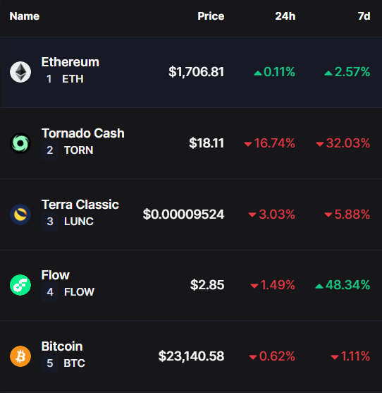 As it happens, over the past day, Ethereum has emerged as the leader of the crypto trending list, strengthening 0.11% in 24 hours and 2.57% across the week, whereas TORN assumed second place despite losing 16.74% on the day and 32.03% in seven days, according to CoinMarketCap data on August 10.