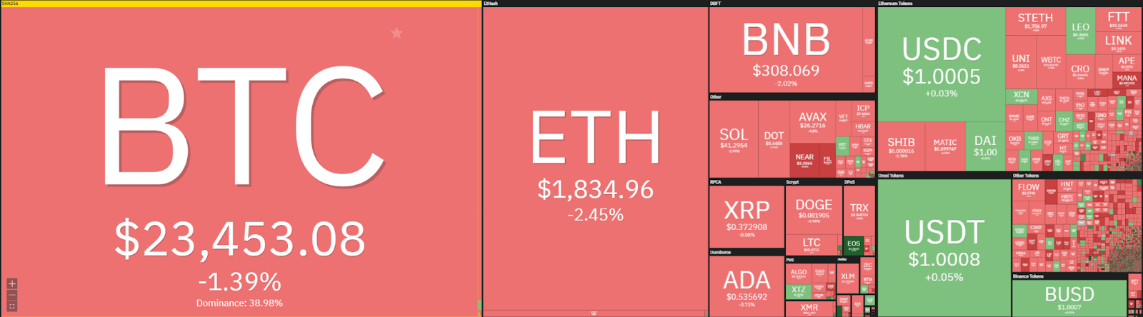 The market has traded in the red over the last 24 hours. The leader, Bitcoin, lost 1.39 percent, while Ethereum lost 2.45 percent. Meanwhile, the rest of the market followed closely with similar results.