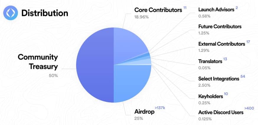 25% of the total supply was distributed through the airdrop, while the rest is designated as shown in the following piechart: