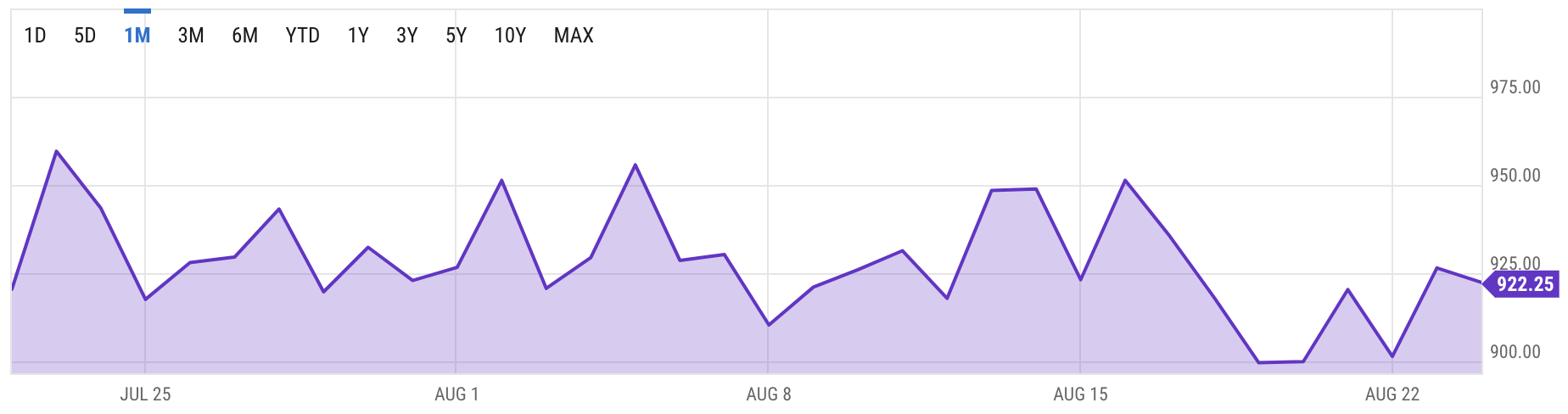 The precise time will fluctuate based on the mining hashrate between now and then. But, so far, the impending end of PoW mining on Ethereum hasn’t put much of a dent on its hashrate, which has remained stable between 900 and 950 terahashes per second (Th/s).