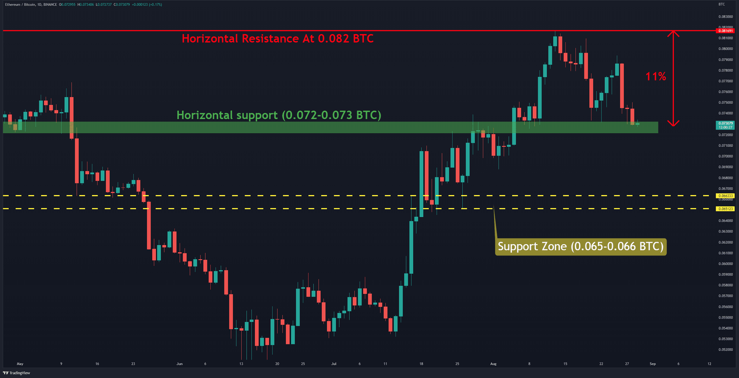 Key Support Levels: 0.0.073 & 0.065 BTC