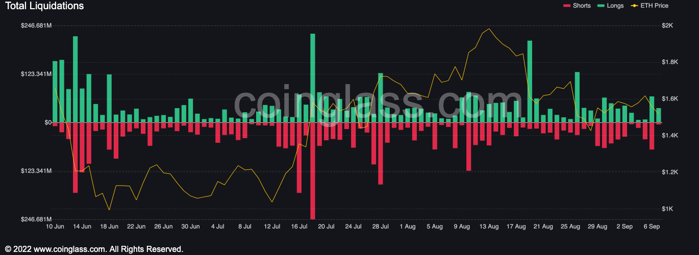 Ethereum short and long positions totaling $107.76 million were liquidated over the past 24 hours, per data from Coinglass. Ethereum Classic follows Ethereum with $38.69 million liquidated over the same period.