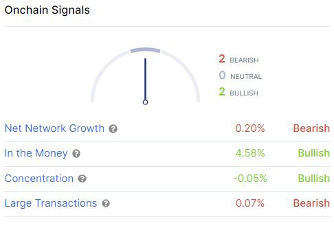 Data by IntoTheBlock revealed that the indicators showing that 58% of the holders are making money at the current price levels and 40% of all holdings for Ethereum are held by whales are bullish parameters for the token. However, at the time of writing, net network growth and large transaction signals remain bearish.