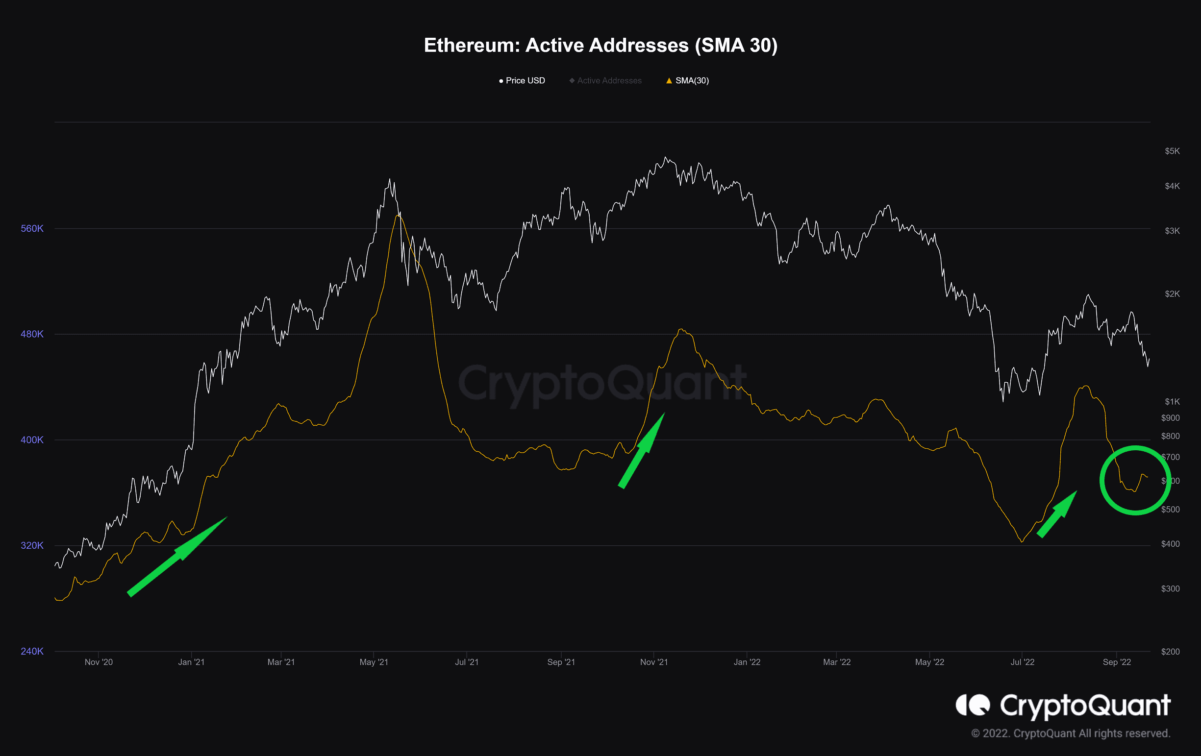 On-chain data shows that bullish trends are frequently, though not always, followed by an increase in the number of active addresses on the network – a sign of growth in on-chain activity.
