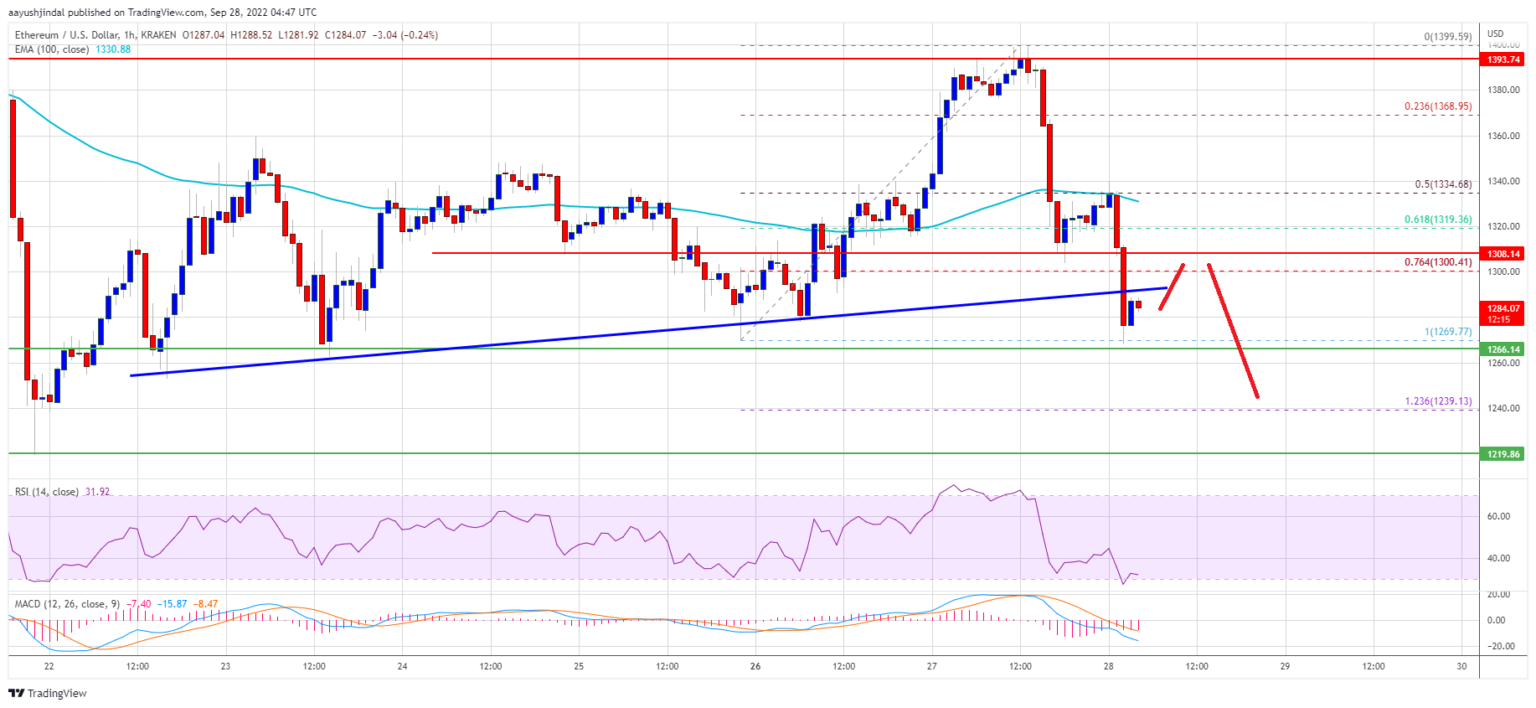 Besides, there was a break below a major bullish trend line with support at $1,290 on the hourly chart of ETH/USD. Ether price is also trading below $1,300 and the 100 hourly simple moving average.