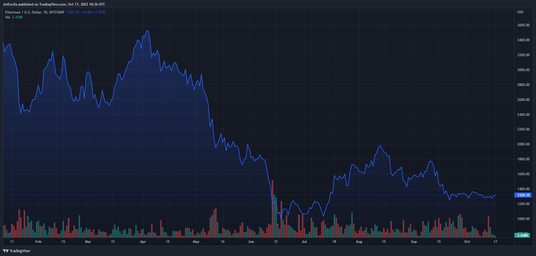 Ethereum, the undisputed ruler of the altcoin market, is now stuck in a bear market as the token struggles to break the $1,300 resistance level. However, the current market price is $1,302.87, only 0.22 percent more than the key psychological buy point.